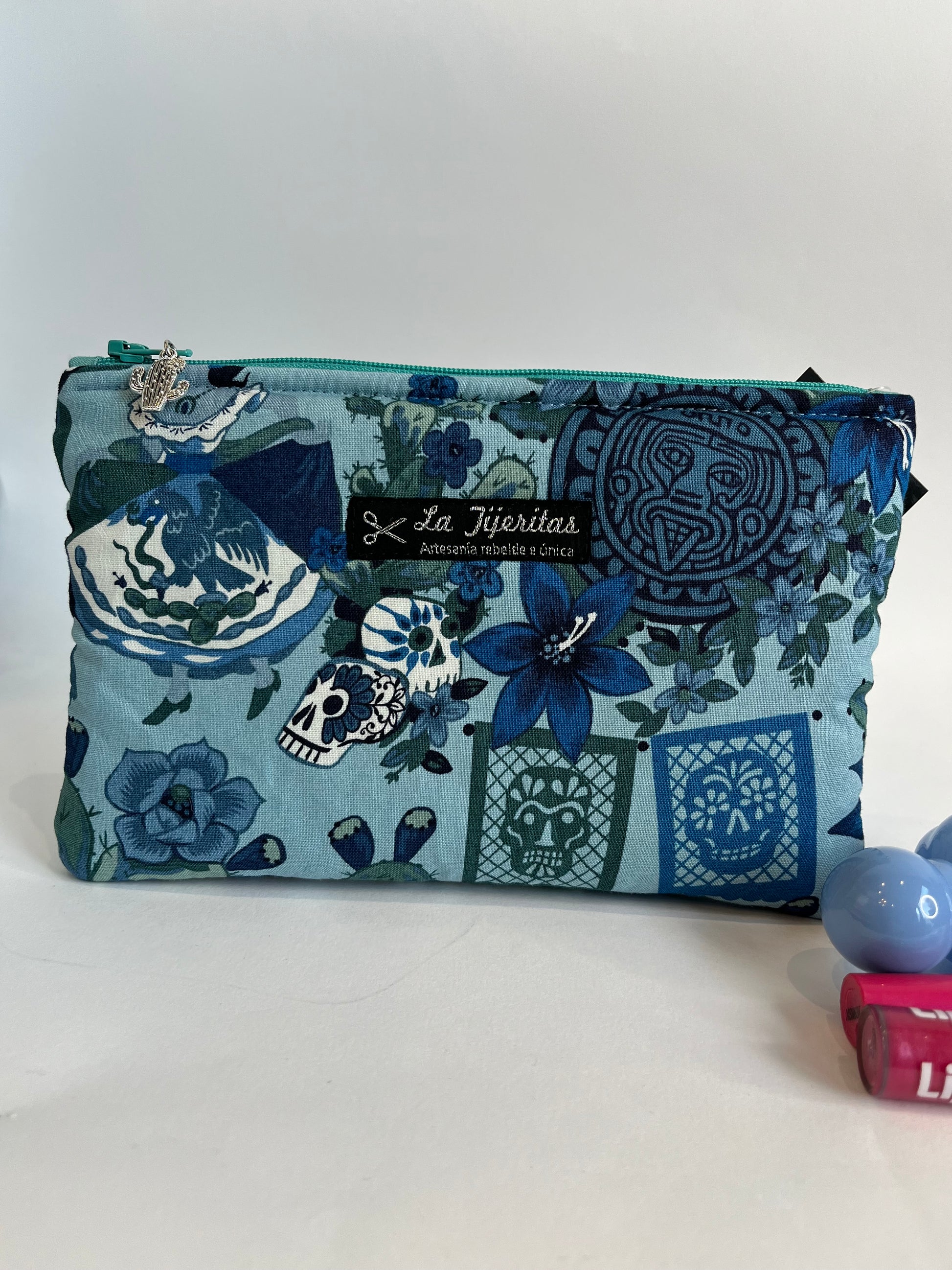 Hecho con retales de las icónicas camisas de La Tijeritas, este neceser de 20x13 cm es el aliado perfecto para organizar tus pastillas, maquillaje, power bank o las cartillas de tus peludos.