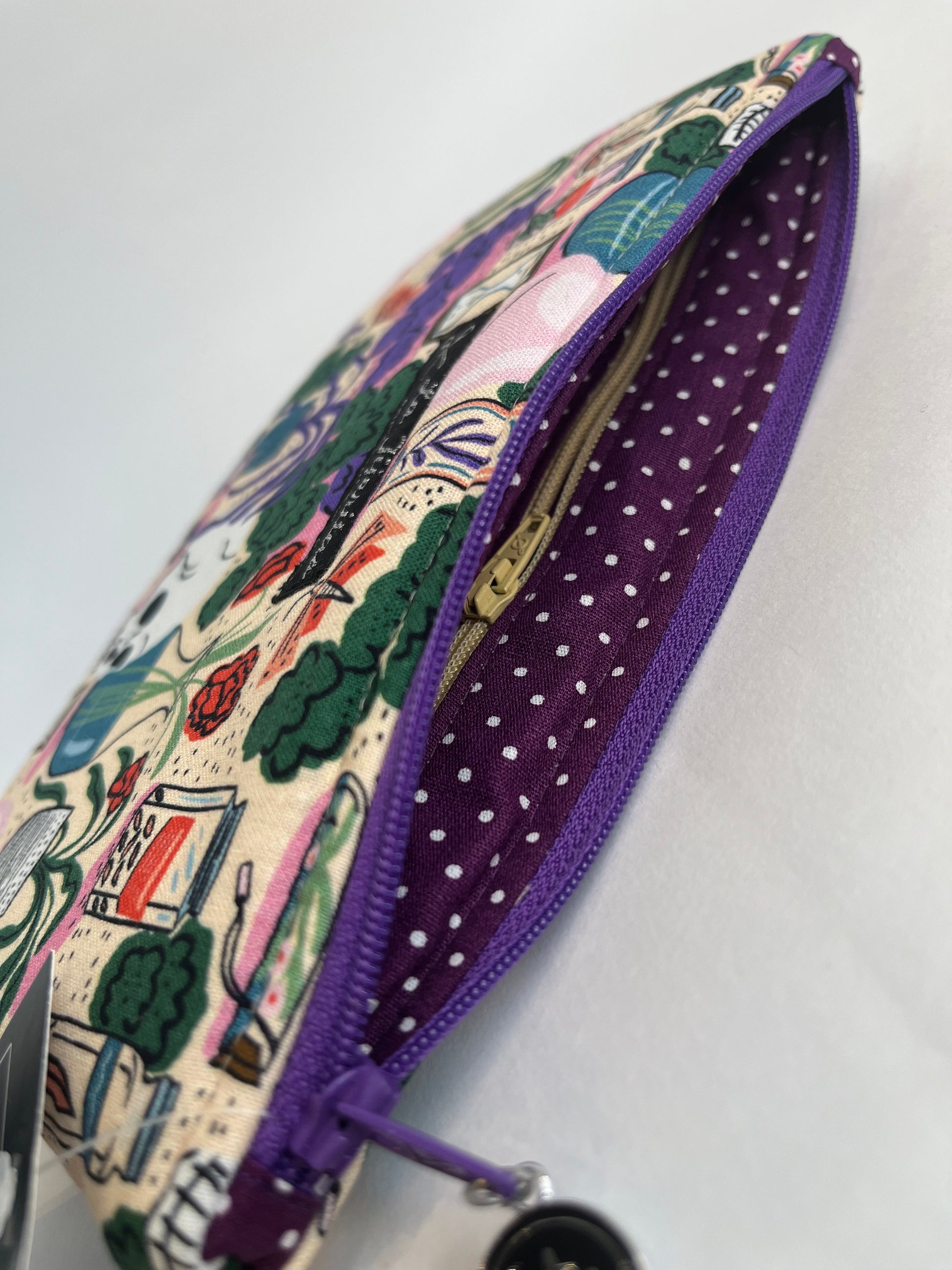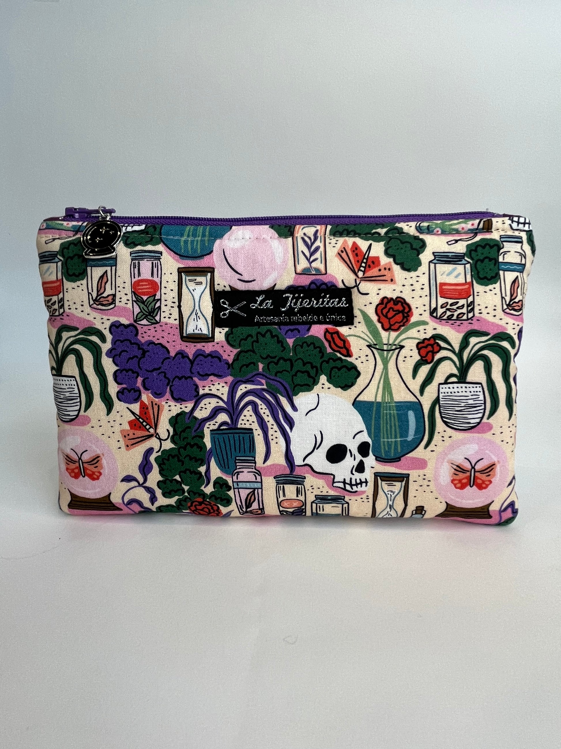 El Neceser Lu Bosque de las brujas, hecho con retales de las icónicas camisas de La Tijeritas, mide 20x13 cm y es perfecto para guardar desde tus pastillas, maquillaje, power bank, hasta las cartillas de tus peludos.